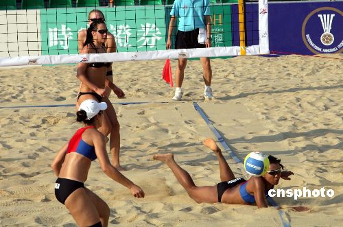 图为泰国队员成功拦网以2比0战胜瑞典。