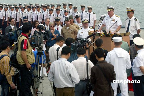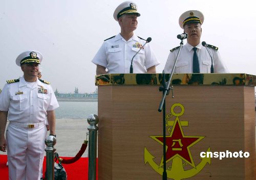 在欢迎仪式上,美国海军太平洋舰队司令拉夫黑德海军上将和海军南海舰队林永青海军少将双方发表了热情洋溢的讲话。