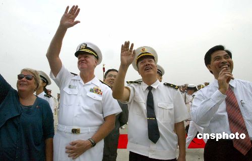 美国海军太平洋舰队司令拉夫黑德海军上将(右三)和中国海军南海舰队林永青海军少将(右二)。