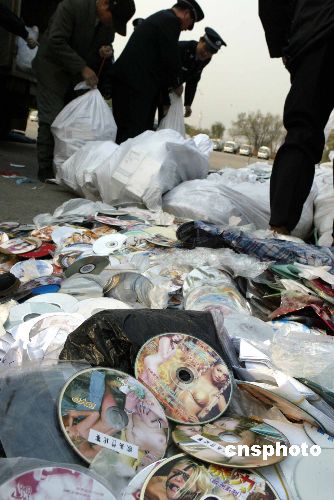 十一月二十三日,北京警方会同相关部门集中销毁淫秽物品三十余万件。今年,北京警方共打掉重大制贩淫秽物品团伙窝点十个,查破制贩淫秽物品案件一千八百六十八起,抓获违法犯罪嫌疑人两千余人。中新社发 任海霞 摄