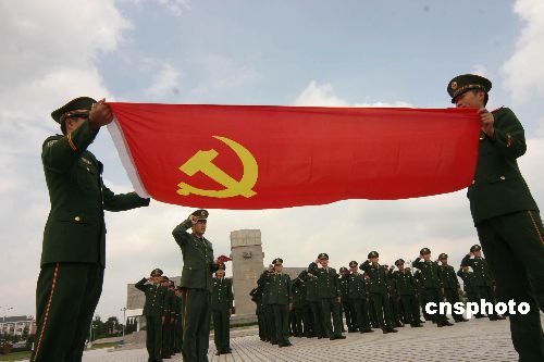 11月24日,又到一年一度老兵退伍的时候,武警江苏总队即将退伍的老兵在对党旗宣誓。中新社发 唐占军 摄