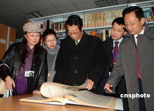 第二期海外华文媒体高级研修班学员,来到中国人民大学新闻学院参观,美国《侨报》副总编辑乔磊等翻阅该院资料室的新闻档案。该研修班由国务院侨办、中国新闻社、中国人民大学新闻学院联合主办。