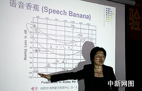 “唯听香港听觉及言语中心”的专家陈嘉霖为福建省的聋儿听力培训教师讲授先进的训练方法。
