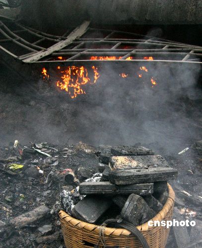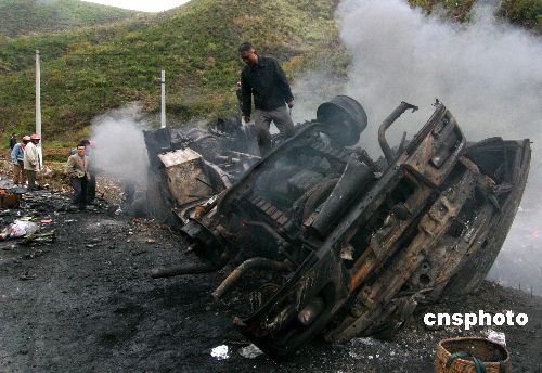 11月26日,湖南衡阳祁东白田市镇铁塘村村民在一个失火货车上寻找没有烧毁的货物。当日凌晨1时许,满载文体用品的湘E14256货车经过湖南衡阳祁东县白田市镇铁塘村时侧翻发生车祸,并引发大火,货车和价值几十万的大部分货物被烧毁,司机幸免于难。中新社发 郭国权 摄