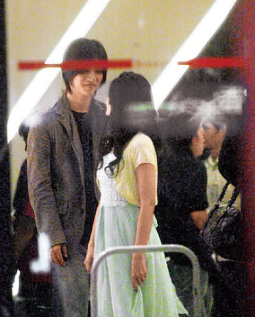 仔仔(左)面带微笑听女友的甜言蜜语。