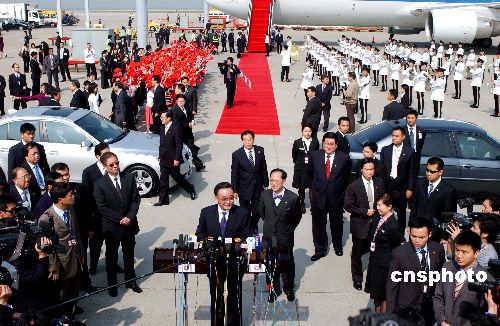 图:吴邦国抵达香港国际机场并发表讲话(2)