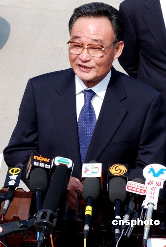 吴邦国飞抵香港考察访问 曾荫权率港府高官迎接