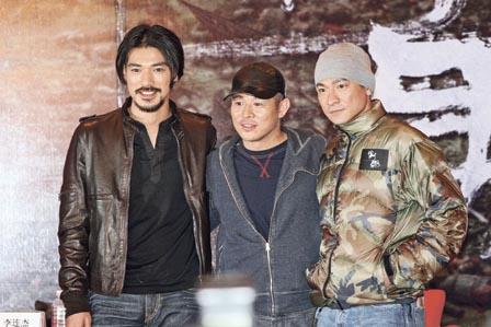 中新网12月5日电 三大巨星刘德华(华仔)、金城武及李连杰为电影《刺马》昨亮相北京记者会,片中三结拜兄弟为女人反目成仇,这位关键女主角导演陈可辛曾相中章子怡,但据传同被三位男主角否决,让女主角难产。记者会上李连杰却说,他在演艺圈二十六年不会说这些话,华仔则搞笑拿吴君如当挡箭牌,金城武则事不关己,三人竟都没为章子怡说一句好话,令人意外。