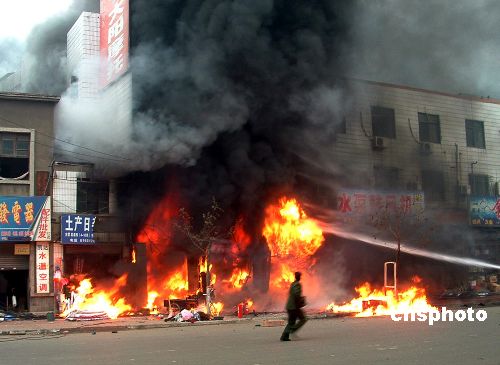 河南一油漆店着火幸无人员伤亡(2)