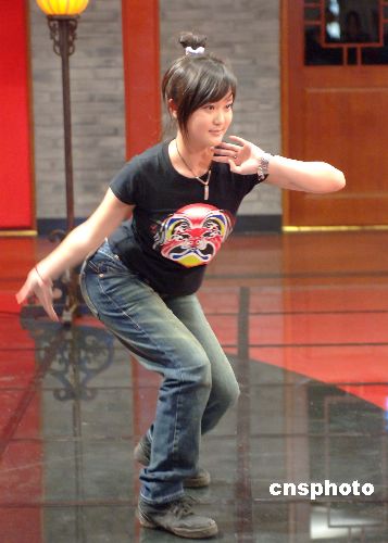 一名姑娘在北京大观园红楼宴酒店参加“红楼梦中人”北京赛区第二阶段才艺比赛,展示自己的舞姿。