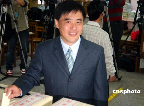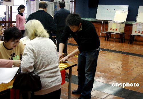 十二月九日台北市长、市议员选举投票正式开始,一些市民清早带着自己的身份证、选举通知书等来到投票站,并在工作人员协助下办理投票手续,参加投票。中新社发 徐长安 摄