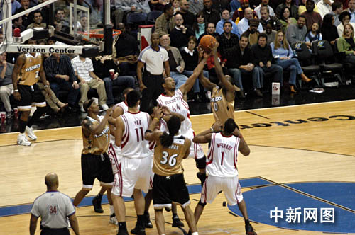 今晚的门票最贵卖到4百美金一张,但最便宜的只要40元美金,场上观众爆满。据介绍,姚明等火箭队每年平均要来这里一次,本地球迷想要看到姚明机会相当难得。在每一次球场暂停间隙,组织者都有精彩的表演,火爆的辣妹舞蹈、惊险的空中蜘蛛侠投篮、奇异的魔术和缩身特技等等,引来观众的一阵阵掌声,花钱买票的球迷说,“看这场NBA很值得!”