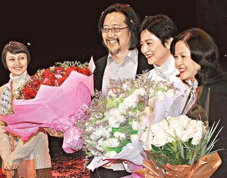 此时丁乃竺上台,她说:“我已经很久没有上舞台,但是今天我一定要在上海大剧院露面,因为今天来了一位非常特殊的客人──林青霞。”全场观众掌声雷动,青霞带微笑上台,袁泉即向她献花,青霞接过花后,便将花献给丁乃竺,最后三代主角一齐将花献给赖声川,场面感人。