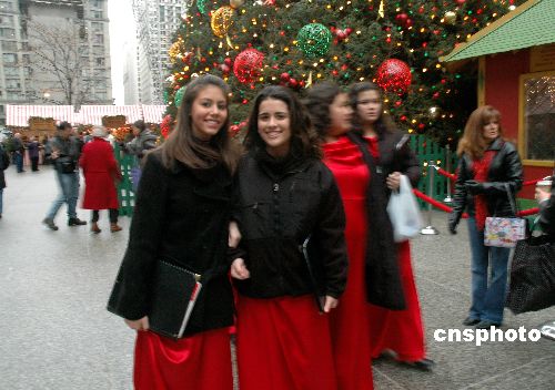 身着节日盛装的学生们,使芝加哥的圣诞气氛更加浓郁。