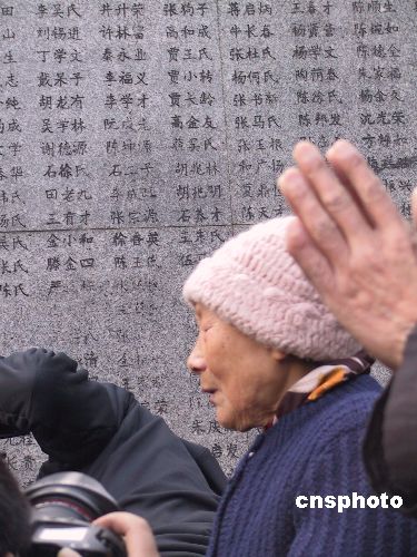图为南京大屠杀幸存者在和平法会上悼念遇难同胞。