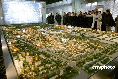 图为台湾青年代表们正在参观奥林匹克公园鸟瞰模型。