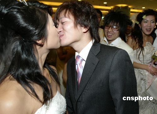 南宁新人艾滋病日办集体婚礼 红丝带作信物(图)