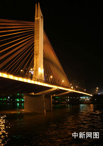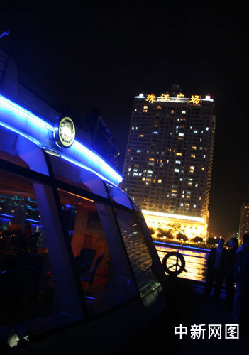 “科学发展看广东——全国重点网络媒体广东行”采访团18日乘坐邮轮,观赏了美丽的广州珠江夜景。 魏恒 摄