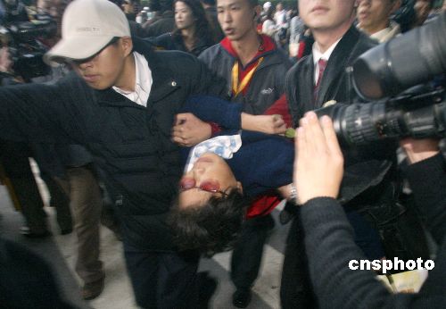 图:元旦日台北一女子因高喊“倒扁”口号被捂嘴(2)
