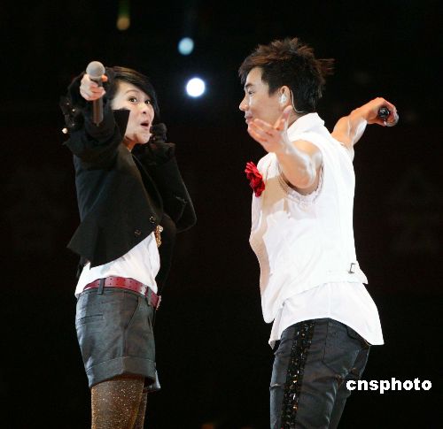 12月31日,任贤齐在南京举行个人跨年度演唱会,刘若英,台湾音乐人小虫等前来为他助兴。中新社发 吴俊 摄