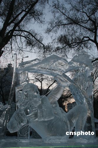 1月8日,第21届中国·哈尔滨国际冰雕比赛在哈尔滨市落下帷幕。经过三天精雕细琢,俄罗斯哈巴罗夫斯克一队力拔头筹,他们的冰雕作品《渔夫》获得一等奖。本届冰雕比赛共有来自俄罗斯、法国、美国、加拿大、日本、韩国、蒙古、马来西亚、中国等10个国家的38支代表队100多名中外冰雕艺术家献艺竞技。中新社发 王忠言 摄
