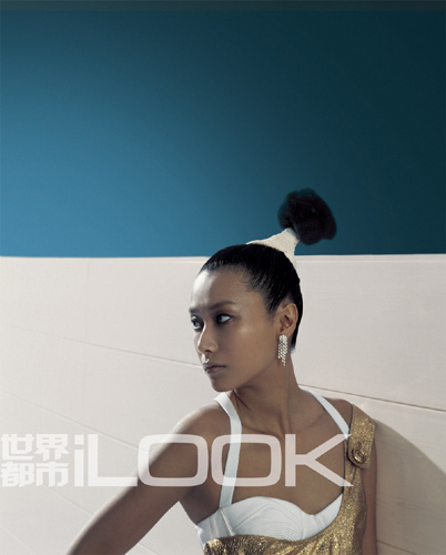 提到人,自然要说说这次的covergirl徐静蕾(blog)。她跟“金”沾边的一点可以说是她正处在一个女人的“黄金时代”。演电影拍电影,在今年都硕果多多,博客无人能敌,自己的公司“鲜花村”也处于怒放的时节……她跟“金”最不沾边的是,金不是她的颜色。她皮肤黑、人又瘦,你大概从没见她穿过金色。徐静蕾是iLOOK拍过的最特别的女艺人,“打扮”她并不容易,稍微过一点,她就不好看,稍微简单点,她就成了邻家女孩儿,这怎么成,我们要的是一个“黄金时代”的女人,她要有力量,有内容,最重要的是她得穿金戴银——一大片的金碧辉煌,不是她;小里小气的金,撑不住她……最终我们选择了白和蓝,白和金是一种高级的颜色,不像黑和金配起来会浓郁到喘不上气来,太神秘、太幽暗的,不是徐静蕾。“越过白色的墙面,抬头望见蓝色天空”,这情景似乎是很适合老徐的。翻开《世界都市ILOOK》本期新刊,就会了解到她独有的见解。