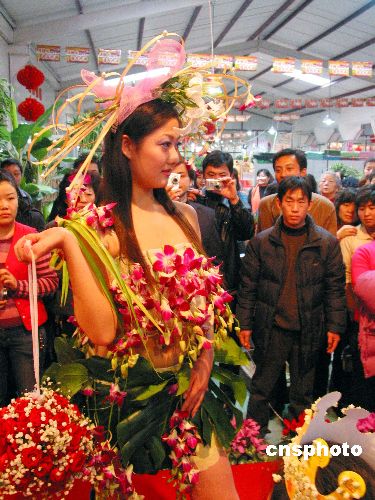 图:鲜花为“裳” 性感“花模”现身花卉市场(2)