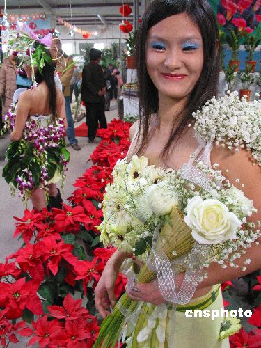 图:鲜花为“裳” 性感“花模”现身花卉市场(3)
