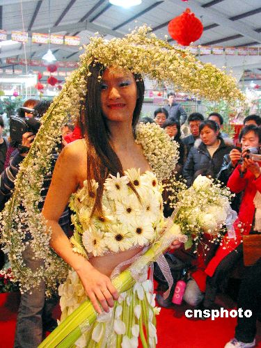 图:鲜花为“裳” 性感“花模”现身花卉市场(4)