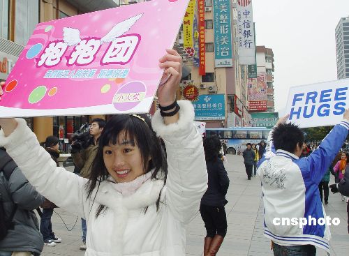 1月14日,南京抱抱团组织一群青年在南京湖南路街头举行一场名为“抱抱团”的活动。据介绍,这是一种传递爱心的公益活动,目的是让人们感受真情的温暖,接受陌生人的关怀。中新社发 荀海 摄