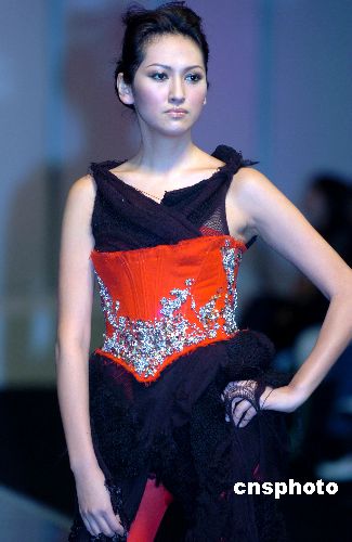 在18日的香港国际时装上,香港贸发局举办“香港青年时装设计家创作表演赛”,表演赛聚集香港众名模会聚,T字舞台上争奇斗艳,角逐激烈。中新社发 宋吉河 摄