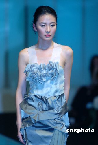 香港日前举行大型青年时装设计家创作表演赛﹐舞台上新潮时装荟萃,名模性感走秀﹑尽展风采。中新社发 宋吉河 摄