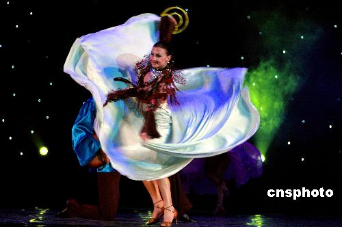 1月21日晚,世界著名的娱乐制作公司“环球娱乐”打造的《世界之舞》在河北艺术中心上演,荟萃了奥地利华尔兹、阿根廷探戈、西班牙弗拉明戈、土耳其肚皮舞等异国舞蹈。据了解,演员中包括45名曾在国际舞蹈大赛当中获得冠亚军的选手。中新社发 林风风 摄