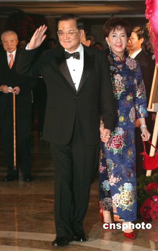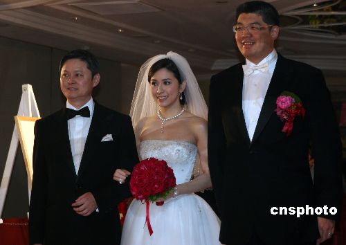 1月22日晚,中国国民党荣誉主席连战长子、国民党中常委连胜文与新婚妻子蔡依珊在台北办婚宴,各界名流云集。中新社发 黄少华 摄