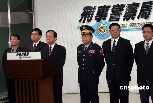 台湾“刑事警察局”局长黄茂穗(左三)等向媒体介绍两岸警方合作抓捕台湾运钞车抢犯李汉扬、李金瓒经过。