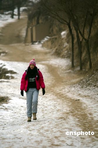 1月19日至26日,周大福携手联合国儿童基金会亲善大使莫文蔚小姐,在甘肃展开“爱”意满甘肃的亲善探访之旅。在此期间,甘肃静宁山区连续降温下雪,莫文蔚每天奔波十余小时,坚持完成了自己的探访计划,将“爱心”送到大山深处。中新社发 杨可佳 摄