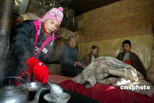 亲善大使莫文蔚甘肃山区为残疾儿童煮粥。