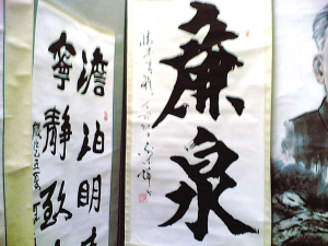 当然,也有人看热闹看出了感慨。一位须发皆白的老先生和老伴结伴而来,看到几幅别人“赠肖作新先生雅正”的字,上面写着“廉泉”、“宁静致远,淡泊明志”等词句,老人家连声说,“写这些字给贪官,多讽刺啊。”“就看个热闹,拍卖是不参加的,毕竟啥也不懂,哪能知道东西是好是差啊。”——跟基于这种心态下,往往速来速去的看热闹者相比,那些为数不少的“淘宝”者们有耐心得多了。记者从展厅一角的登记处了解到,到昨天为止,已有数十人交纳了保证金报名参加拍卖。对他们当中的大部分人来说,看中的当然是物品本身的价值。