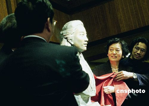 图:张纯如铜像在斯坦福大学揭幕(2)