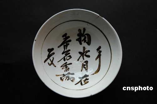 图为此次发掘出土的宋金时期文物墨书白瓷碗。
