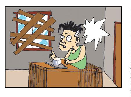 记者看到,范志忠住的二楼只有一把木梯子上下,他的母亲说,原来的楼梯被范志忠毁了。记者脱了棉衣,总算“钻”了上去,只见范志忠住的房子窗户被木板封死,仅留一个小门进出,屋里没有一丝光亮。