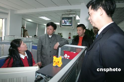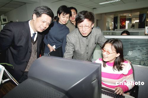 图为中新社总编辑郭招金(右一)陪同他参观该社主办的中国新闻网(简称“中新网”)。