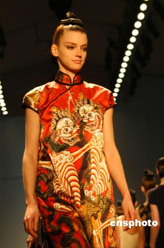 纽约时装周“二00七秋冬系列”展正在曼哈顿布莱恩公园举行。图为二月七日华裔知名设计师Vivienne Tam(谭燕玉)推出的秋冬系列充满东方元素,别具韵味。中新社发 谭宏伟 摄