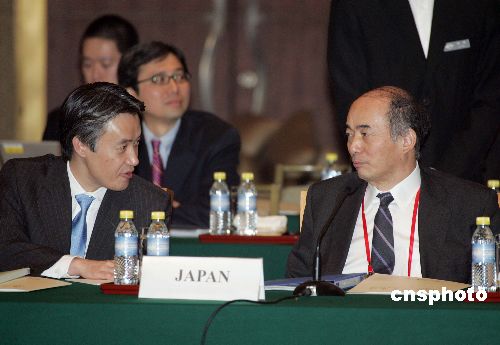 出席会议的日本代表团团长佐佐江贤一郎(右)。
