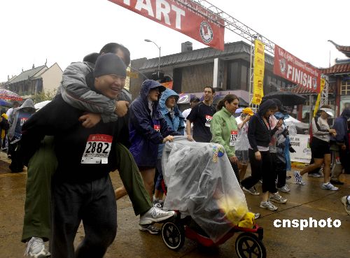 洛杉矶中国城春雨爆竹声中马拉松开赛(组图)