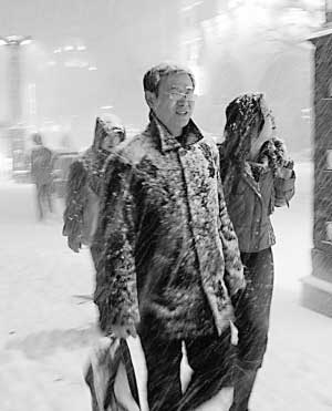 20时15分,在友谊路报业大厦门前,两辆轿车相撞后,司机们下车交涉不到两分钟就都变成了雪人。一位出租车司机告诉记者,由于路面非常光滑,车辆不敢起速,平均时速在20公里左右,即使是在这样的速度下,刹车距离也得两米。