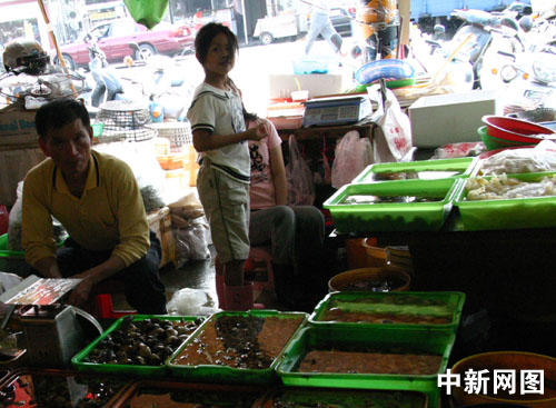 图:台湾屏东县东港码头节日休船游客品购海鲜(2)