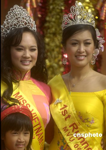二月里来好春光,旅居美国洛杉矶的华裔选美小姐欢聚一堂,向美国百万华人华侨及各族裔民众展现如花似锦的的魅力。中新社发 贾国荣 摄