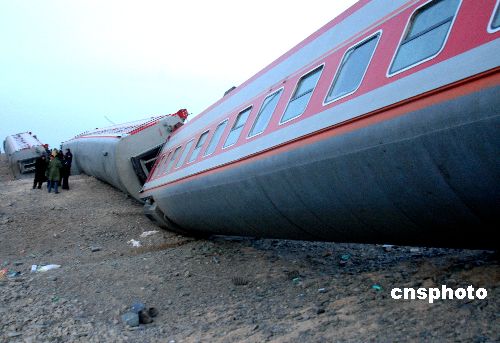 2月28日凌晨2时05分左右,一列从新疆乌鲁木齐驶往阿克苏的5807次列车行至南疆线吐鲁番境内珍珠泉车站至红山渠车站间42公里+300米处,因13级大风造成11节车厢被吹翻,3人死亡,2名旅客重伤,32名旅客轻伤,南疆线被迫中断行车。事故发生后,吐鲁番当地政府及乌鲁木齐铁路局迅速组织救援。 新疆南疆铁路线已于28日11时30分重新开通。中新社发 刘健 摄