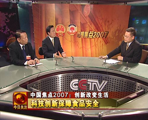 好,观众朋友,欢迎继续收看我们的“两会”特别报道:中国焦点2007年。今天,我们关注的是科技创新这个话题。今天演播室我们特别邀请到了两位权威的嘉宾,我来介绍一下,一位是科技部副部长尚勇先生,你好,尚部长。